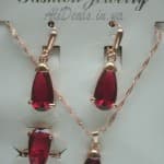 Камни — чистое и прозрачное стекло насыщенного и глубокого красного цвета, очень красиво смотрятся на солнце. Размер каждого камня — 20 мм на 10 мм (в самом широком месте). Половина длины цепочки — 23 см, т.е. она не очень длинная. Цвет покрытия действительно напоминает золото.
